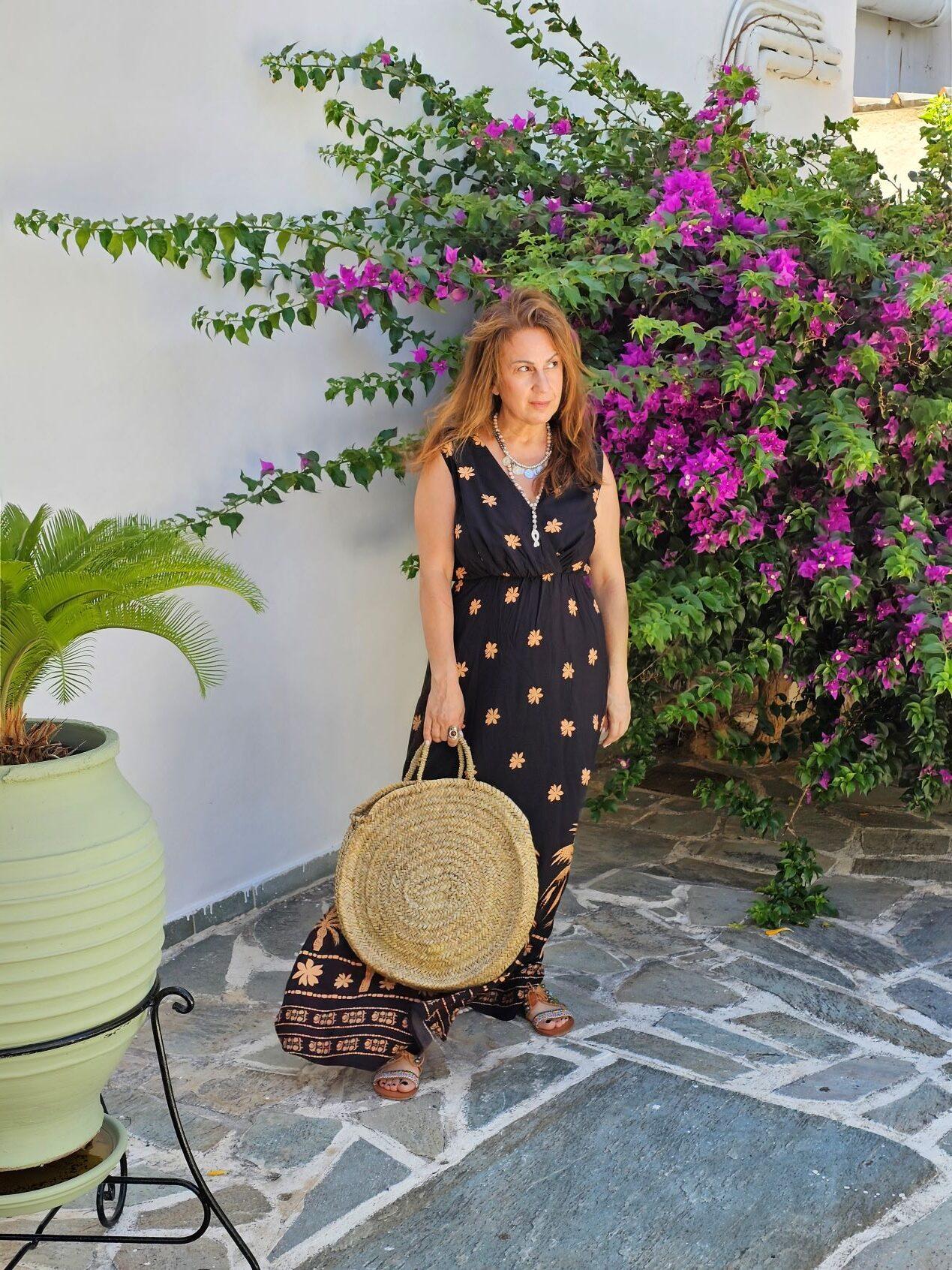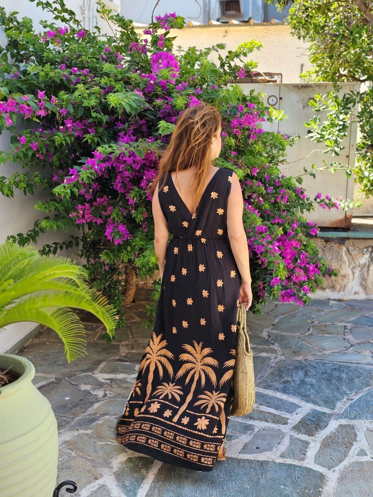 Αέρινο μακρύ φόρεμα ιδανικό για καλοκαιρινές εμφανίσεις. Το σχέδιο αγκαλιάζει τη σιλουέτα με κρουαζέ μπούστο και ελαστική μέση που προσφέρει άνεση και κομψότητα. Κατασκευασμένο από ανάλαφρο ύφασμα, προσφέρει δροσερή αίσθηση και ανάλαφρη κίνηση. Ιδανικό για βόλτες στο νησί, καλοκαιρινά πάρτι, χαλαρές εξόδους.